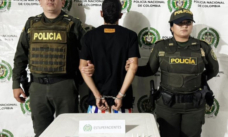 La Policía Nacional, a través de uniformados del Modelo del Servicio de Policía, realizan la captura en flagrancia de un sujeto de 26 años, por el delito de tráfico, fabricación o porte de estupefacientes.