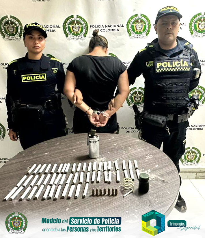 La mujer capturada fue dejada a disposición de la fiscalía de turno en la URI, dónde deberá responder por los delitos de tráfico, fabricación o porte de estupefacientes y fabricación, tráfico o porte de armas, municiones o explosivos de uso privativo de la fuerza pública.