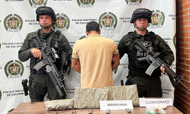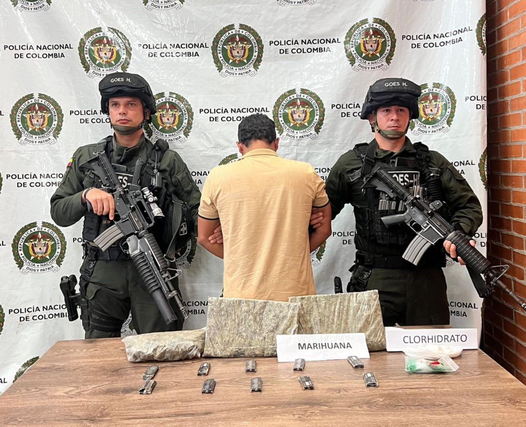 El procedimiento se desarrolló en la vereda Rubiales del municipio de Puerto Gaitán, Meta, luego de que los uniformados del Grupo de Operaciones Especiales de Hidrocarburos, realizaban labores de vigilancia y control sobre el sector, son alertados sobre una persona que al parecer se encontraba portando sustancias psicoactivas.