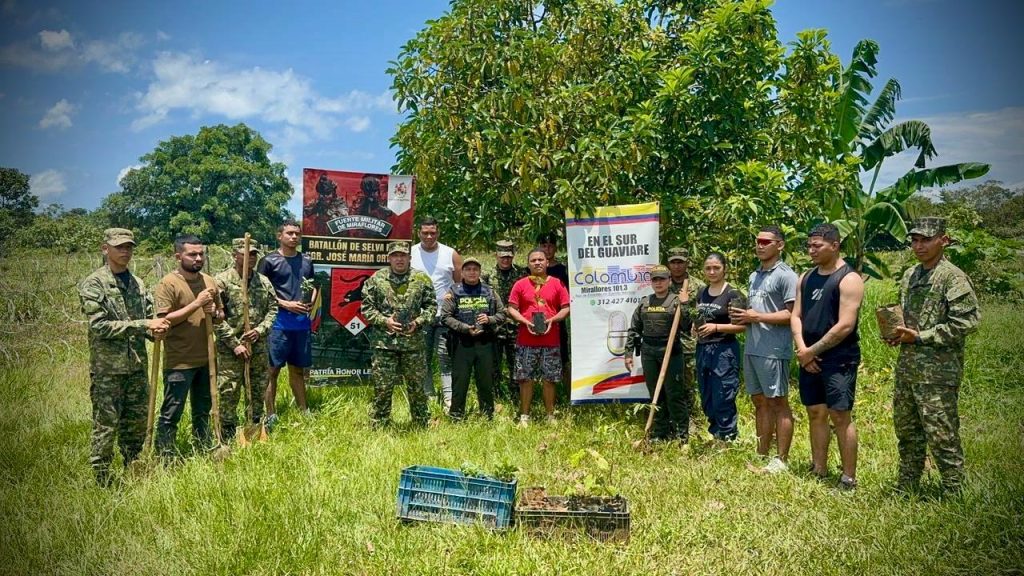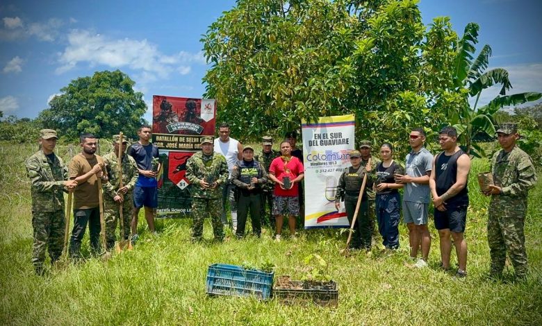 En el marco del Plan de Campaña Ayacucho Plus, se llevó a cabo en Miraflores, Guaviare, una gran jornada ambiental que permitió la siembra de más de 2.000 plántulas nativas, entre ellas guarumo, cafeto, cabo de hacha y palo de arco.