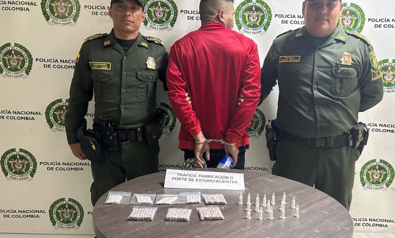En la Calle 52 sur con carrera 33 via pública Barrio el Darién, uniformados de la Policía Nacional efectuaron la captura en flagrancia de un hombre 34 años, por el delito Tráfico, Fabricación o Porte de Estupefacientes.