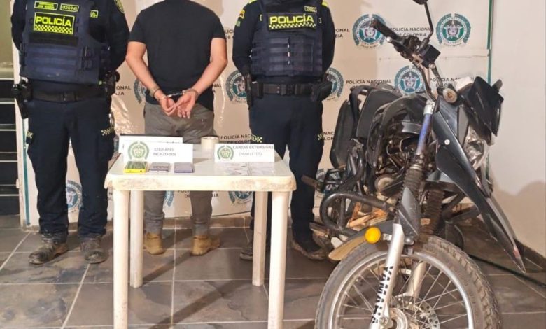 El procedimiento se llevó a cabo del centro poblado de Canaguaro, donde unidades del Modelo de Servicio de Policía sorprendieron al ciudadano cuando se desplazaban en una motocicleta, distribuyendo panfletos extorsivos con los cuales pretendía intimidar a los habitantes de la zona.