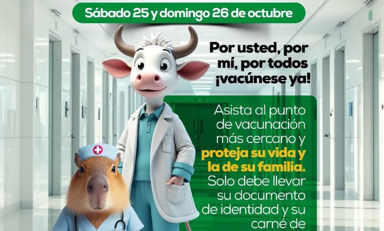 Con el propósito de aumentar las coberturas de vacunación en todos los grupos de edad y proteger la salud de los metenses frente a enfermedades prevenibles, la Gobernación del Meta, a través de la Secretaría de Salud, se une a la Jornada Nacional de Intensificación de Vacunación, que se llevará a cabo este viernes 24 y sábado 25 de octubre en los 29 municipios del departamento.