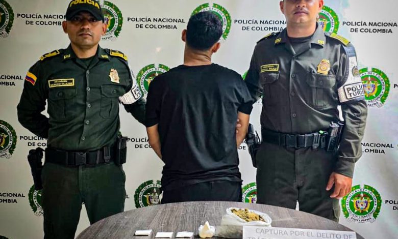Uniformados del Grupo de Protección al Turismo y Patrimonio Nacional de la Policía Metropolitana de Villavicencio hicieron efectiva la captura en flagrancia de un sujeto por el delito de tráfico, fabricación o porte de estupefacientes