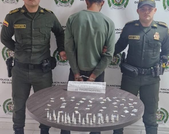 El procedimiento se llevó a cabo en la calle 33 con carrera 27 del barrio Porvenir, donde los uniformados observaron a un hombre en actitud sospechosa. Al practicarle un registro personal, se le halló una bolsa plástica de color negro que contenía 46 bolsas con basuco y 30 tubos plásticos con clorhidrato de cocaína.