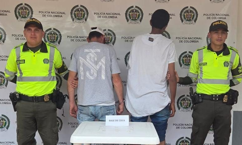 El Departamento de Policía Meta, a través de la Seccional de Tránsito y Transporte, realizó la captura de dos ciudadanos de 44 y 32 años de edad en el km 63+000 de la vía Villavicencio – Barranca de Upía, sector Algarrobo, jurisdicción del municipio de Paratebueno (Cundinamarca), quienes se desplazaban en una motocicleta marca Victory, placa RTN-35H. Durante el procedimiento, los uniformados hallaron en su poder un maletín color negro que contenía 10 gramos de base de coca.