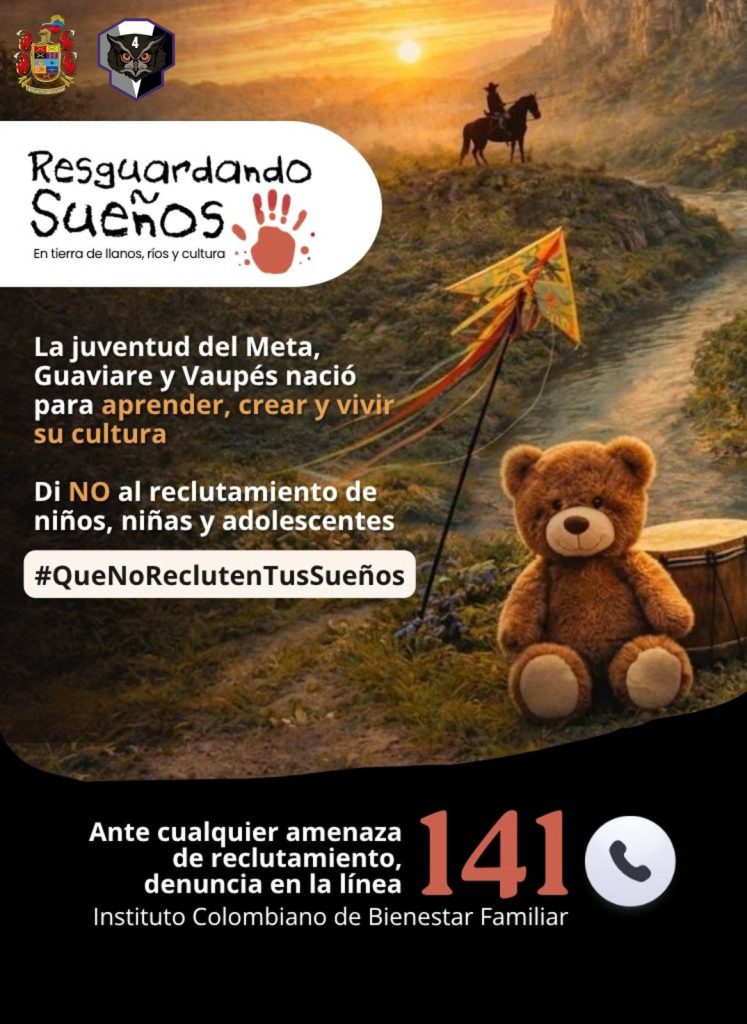 El Ejército Nacional hace un llamado especial a padres de familia, líderes comunitarios y a toda la ciudadanía a estar atentos, y denunciar cualquier situación que ponga en riesgo la integridad de los menores de edad, a través de la línea 141 del Instituto Colombiano de Bienestar Familiar, canal dispuesto para la atención oportuna y la protección de la vida.