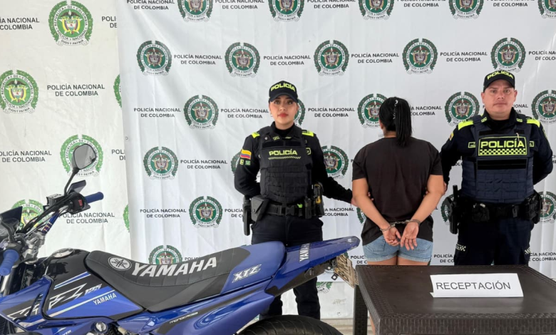 La Policía Nacional en el Departamento de Policía Meta, a través de unidades del Modelo de Servicio de Policía, en las últimas horas logran la captura en flagrancia de una mujer por el delito de receptación y la recuperación de una motocicleta.